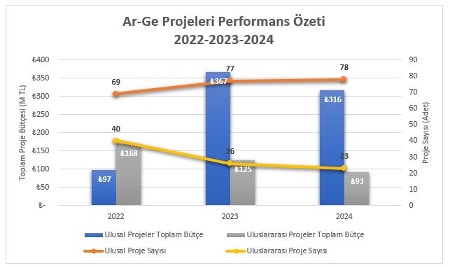 Bilkent Üniversitesi’nin teşvikleri sonucunda son üç yılda Bilkent araştırmacılarının katılımıyla 300’den fazla ulusal ve uluslararası Araştırma ve Geliştirme (Ar-Ge) projesi tamamlanmıştır. Bütçe detayları ve proje türlerine göre dağılım aşağıdaki tabloda gösterilmektedir